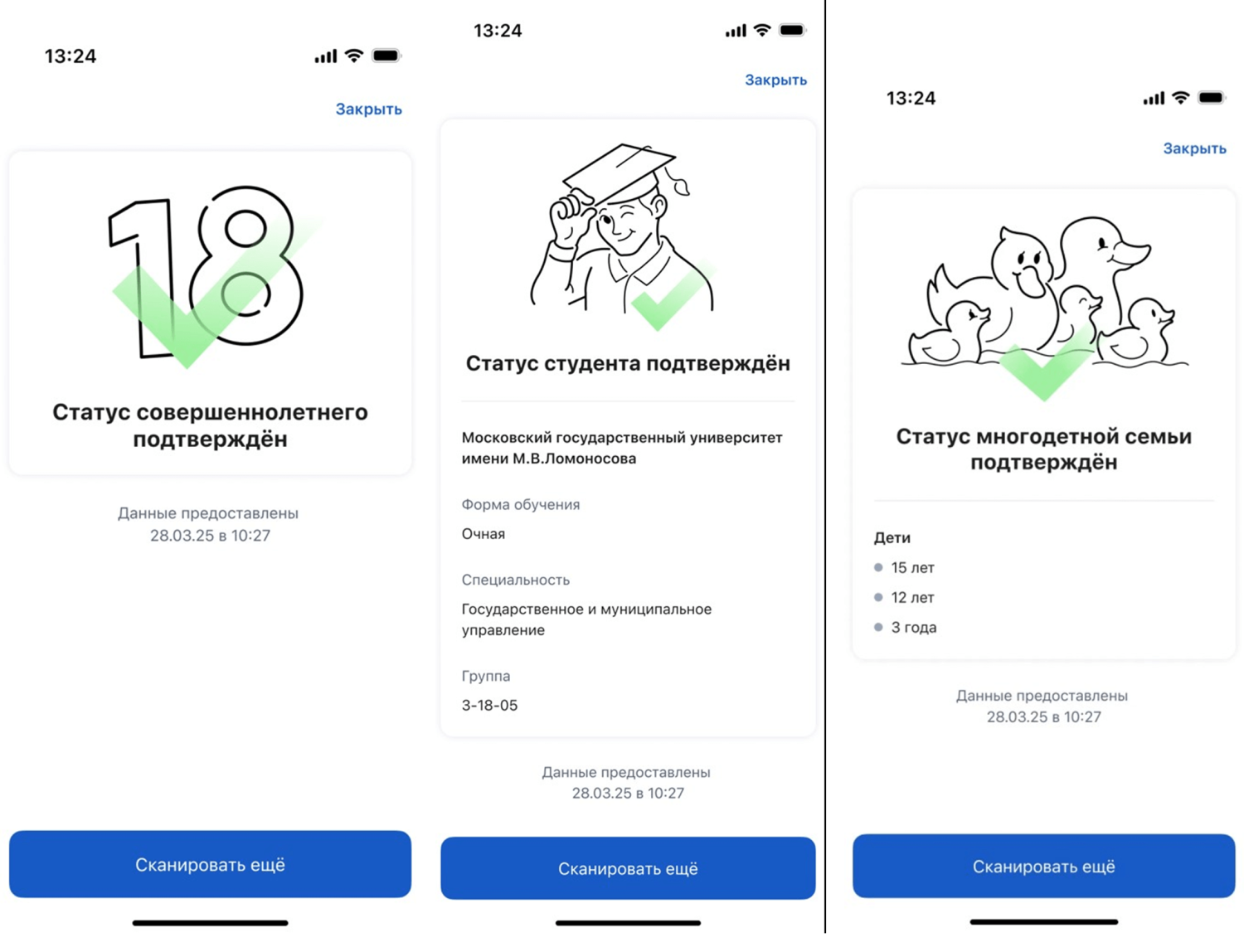 Проверка Цифрового ID осуществляется в приложении «Госуслуги»с использованием сервиса «Госкан» или с помощью предустановленного программного обеспечения на кассах самообслуживания. Проверка с использованием сервиса «Госкан» в приложении «Госуслуги» может быть выполнена любым авторизованным в Госуслугах пользователем на Android или iOS устройстве. На устройстве проверяющего после сканирования отобразится статус проверки без персональных данных покупателя.