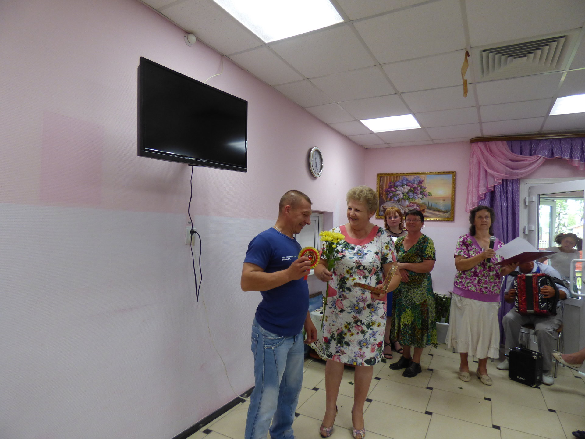 «Юбилеи приходят, как всегда, неожиданно!» - говорят в народе. Это потому, что очень быстро летит время… Совсем недавно, казалось бы, праздновали открытие психоневрологического отделения геронтологического центра «Ветеран», а уже 18 июня 2018 года отмечаем первый пятилетний юбилей этого отделения! Все было торжественно и красиво: большой красивый баннер, шары и цветы, нарядные и улыбчивые жители отделения, гости, подарки… Вдруг, налетел ветер, пригнал темные тучи и хлынул дождь. Наученные быстрой эвакуацией пенсионеры, буквально за 7 минут, как по команде, переместились в помещение столовой! Но даже и этот сильный дождь не испортил праздника! Огромное количество теплых пожеланий в адрес проживающих в центре граждан, слова благодарности в адрес департамента социальной защиты населения, администрации учреждения произнесено на этом торжестве. Не обходятся юбилеи и без награждений. «Старожилам»,  прожившим в учреждении 5 лет вручались цветы, «золотые» медали и ордена, сотрудникам, проработавшим 5 лет – цветы и памятные награды, всех активистов в жизни отделения, награждали по номинациям: «Мисс Доброта», «Мисс Золотое сердечко», «Мистер Трудяга», «Царица Всея Учреждения»… и т. д. Огромнейший торт въехал в зал под занавес праздника! И, конечно, запускали в небо шары желаний! Море песен, танцы, море позитива, фотосессия на память и еще много-много всяких удовольствий! «Ах, юбилей, юбилей…»!  В «Особом Указе по случаю юбилея» было велено «… всем жителям пребывать в хорошем настроении до следующего юбилея!». Думаю,  полученных эмоций должно хватить еще на 5 лет, ровно до следующего юбилея!