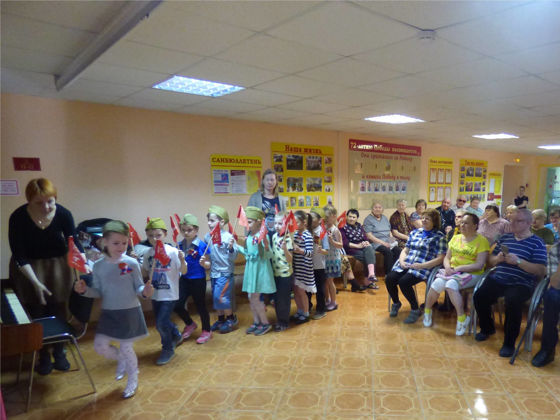 В актовом зале прошло торжественное поздравление ветеранов, были