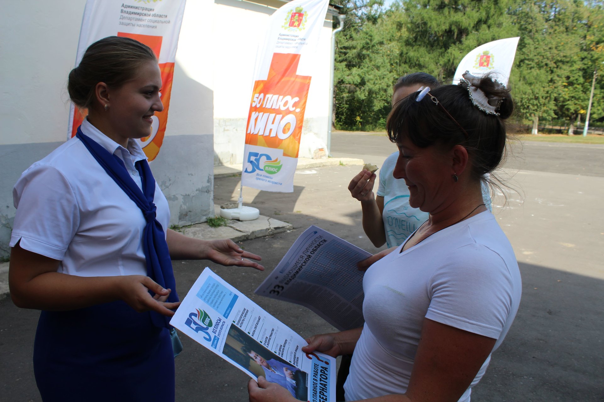 В Доме культуры города Киржача в рамках форума "50 ПЛЮС. КИНО" состоялась встреча с известным актером и режиссёром Московского театра на Таганке Юрием Дорониным. Коллектив проживающих пенсионеров и инвалидов ГЦ «Ветеран» с удовольствием и большой благодарностью внимали рассказам Юрия Никифоровича о жизни и творчества артиста и его любимого театра, награждая его долгими овациями и букетами цветов за каждую песню и каждый рассказ.
