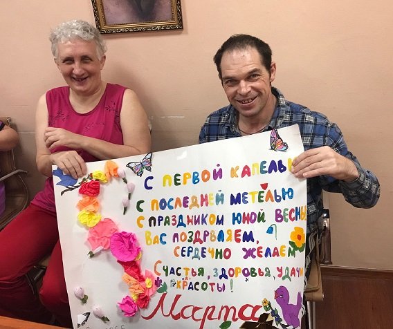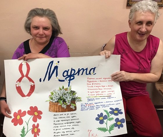 14 марта проживающие психоневрологического отделения центра «Ветеран» получили приятный сюрприз от учеников коррекционной школы г. Киржач. Совместно с учителем трудового обучения они создали газеты с поздравлением и передали их нашим дамам. Женщины были приятно удивлены и довольны.
