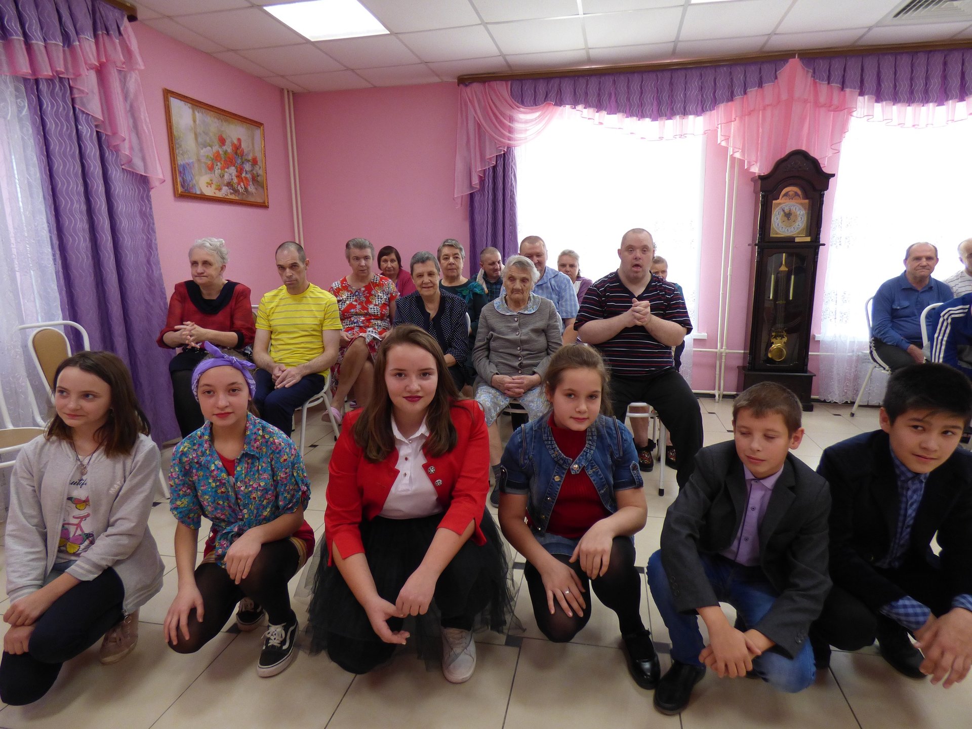 В рамках Декады инвалидов ГЦ «Ветеран» психоневрологическое отделение посетили учащиеся Филипповской школы с музыкально-творческой композицией «Подарим лучик тепла». Проживающие искренне переживали сказочным героям: колобку и деду с бабкой из одноименных народных сказок. Совместно исполненная песня «Одинокая бродит гармонь» растопила сердца клиентов центра.