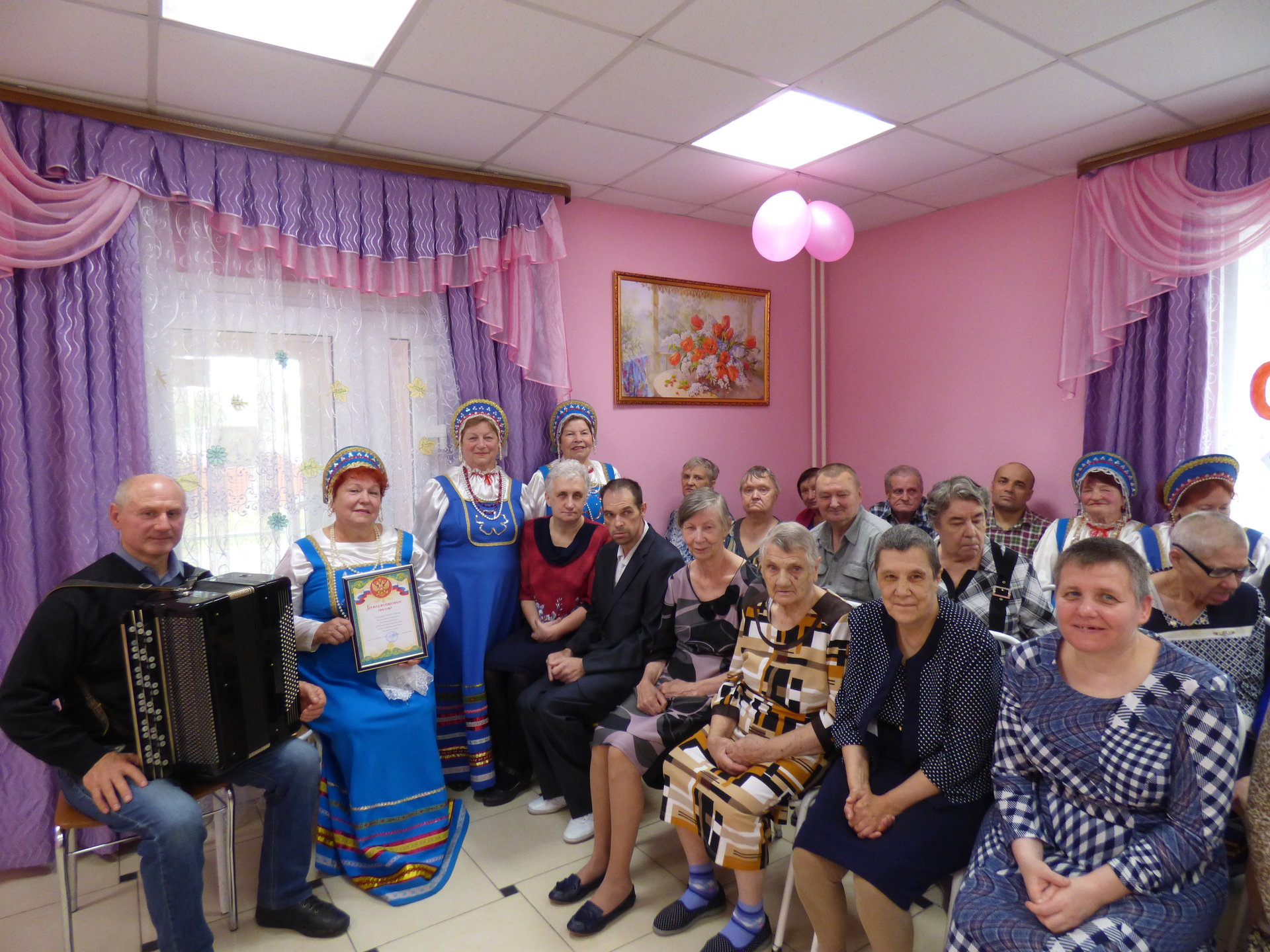 В день пожилого человека клиентов психоневрологического отделения центра «Ветеран» с концертной программой приехали поздравить народный хор «Россияне». Добрые, многим знакомые песни позволили окунуться в комфортную атмосферу и обрести душевный покой.