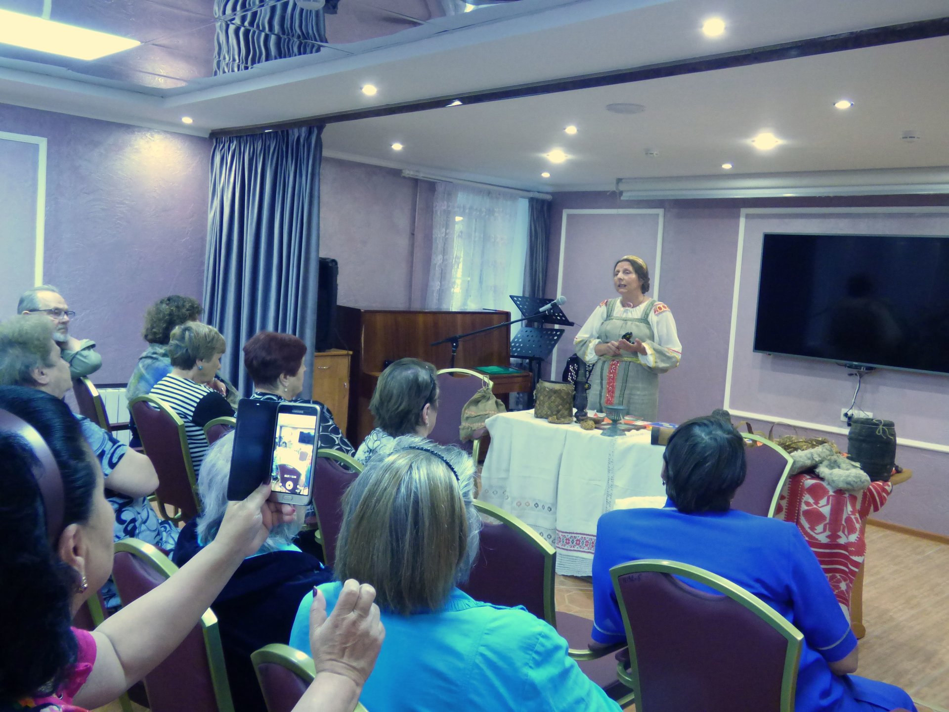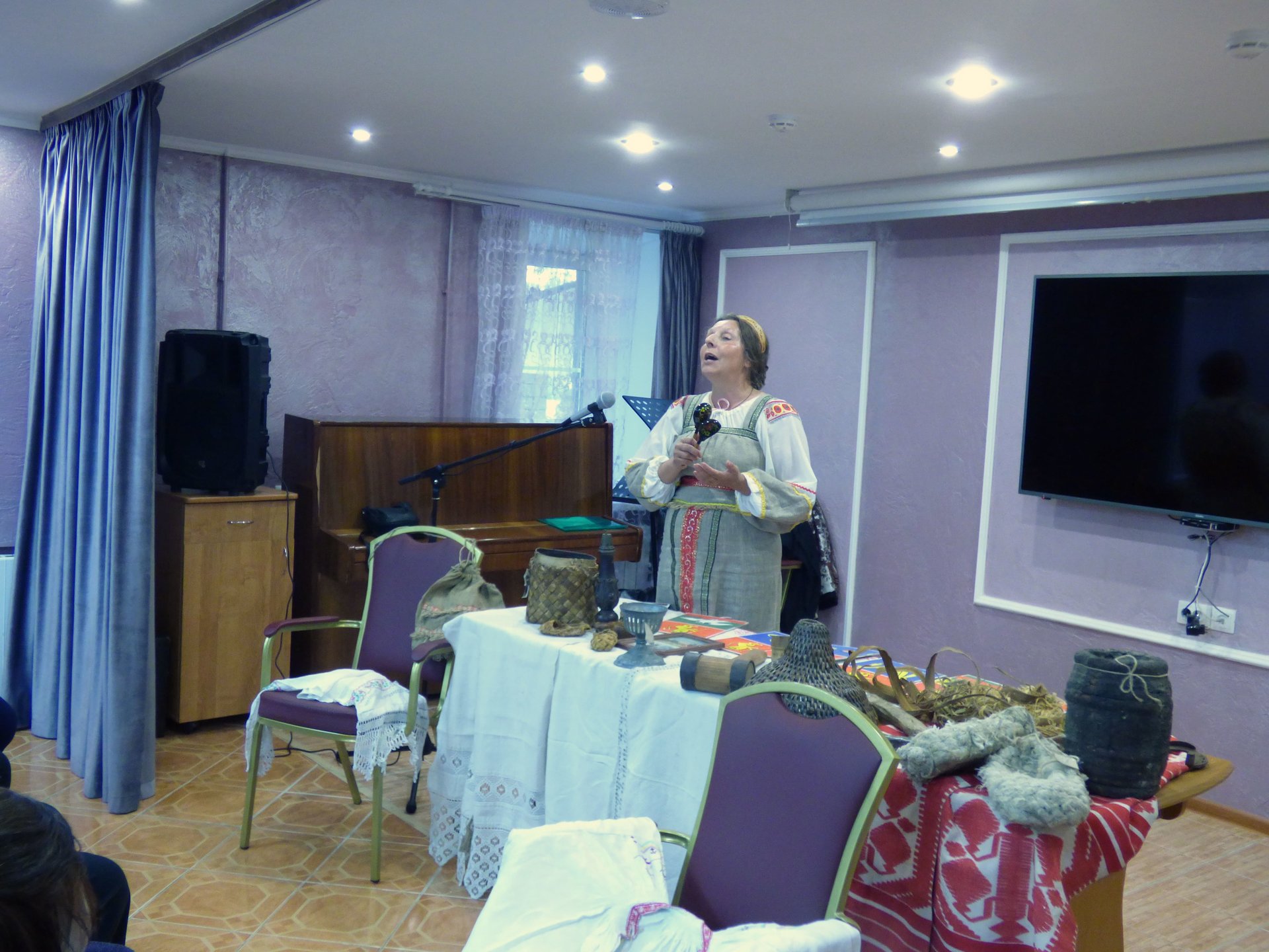 К 75-летию Владимисркой области хранительница краеведческого музея города Киржача М.Г. Гузаревич провела в геронтологическом центре «Ветеран» цикл интерактивных программ «Сказание о земле Киржачской». Эффект полного погружения в мир славян, познавательные лекции с народными наречьями и конечно же настоящие предметы старины, которые Марина Геннадьевна всегда приносит с собой. Их можно посмотреть, потрогать примерить на себя костюмы. Почему символ города Киржача – сова, кто такой Сергий Радонежский, почему смотровая площадка названа «заячьей пустошью» и на многие другие вопросы Марина Геннадьевна дала ответы. Пенсионеры и инвалиды центра активно задавали вопросы и принимали участие в мастер классе «роспись по бересте».