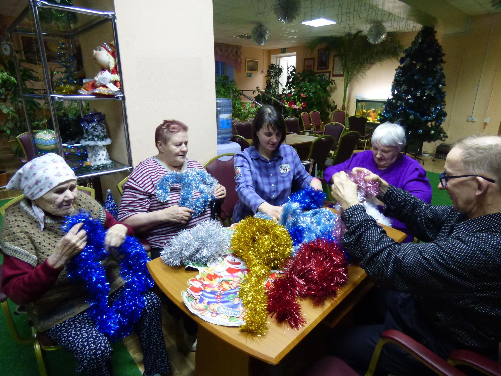 В геронтологическом центре «Ветеран» во всю идет подготовка к самой волшебной ночи в году. Получатели социальных услуг активно включились в процесс, с удовольствием участвовали в мастер-классах по изготовлению украшений ручной работу, разбирали мишуру, вырезали и клеили объемные снежинки. И центр наш сразу преобразился, засверкала елка мишурой, заискрились разноцветные гирлянды, заиграли в залах новогодние песни, ведь Новый год – пора чудес, веселья, искренних пожеланий, которые мы ждем с нетерпением. Новый год – это тайна, благодаря которой многие люди обретают смысл дальнейшей жизни. В любом из нас живет вера в сказку и волшебство. И каждый наступающий Новый год – прекрасная возможность для всех нас поверить в чудеса и убедиться, что они могут произойти!