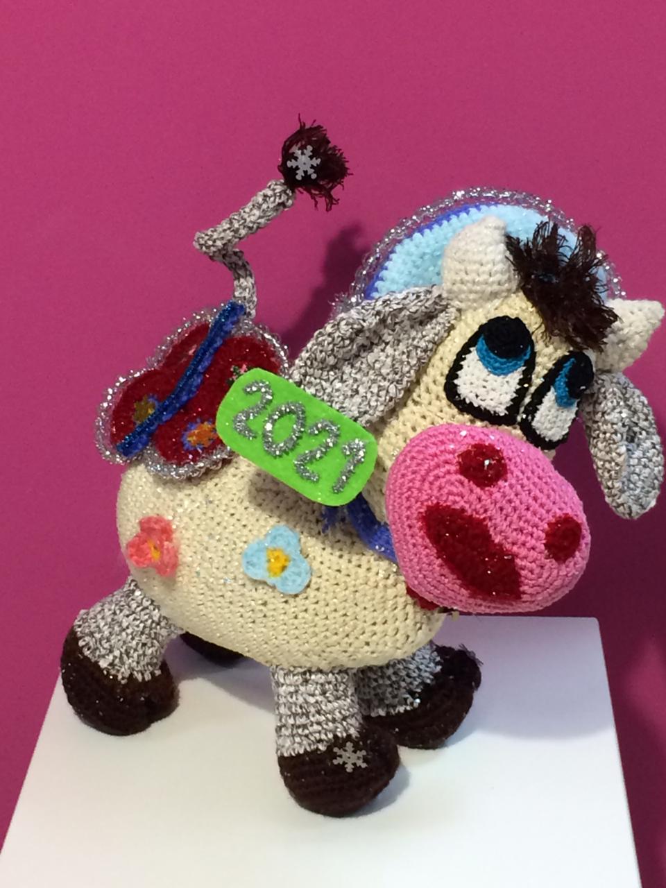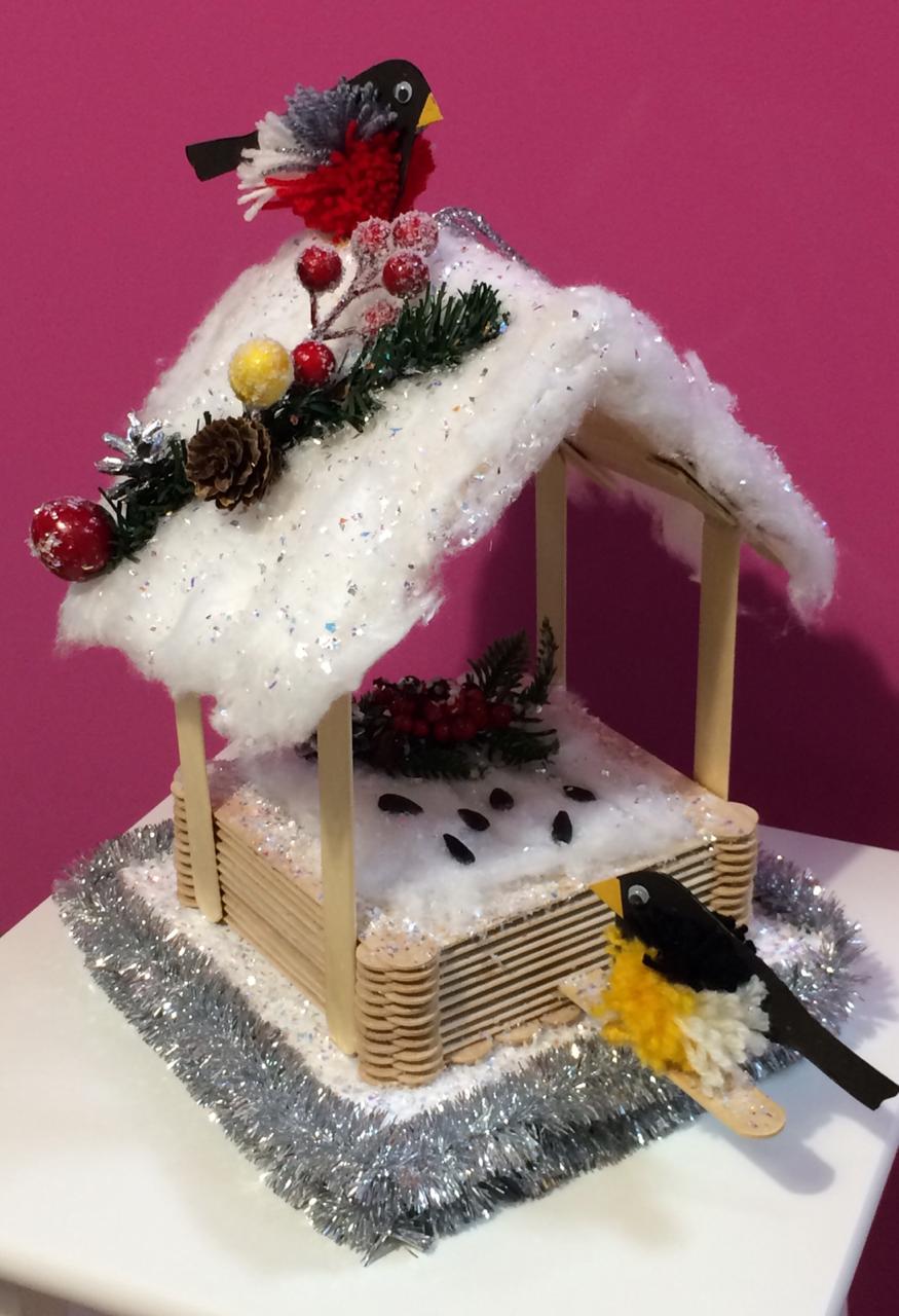 На конкурс были представлены - очаровательный вязаный бычок, как символ наступающего года, выполненный Натальей Карамазовой и чудесная птичья столовая, совместная работа участников университета третьего возраста.