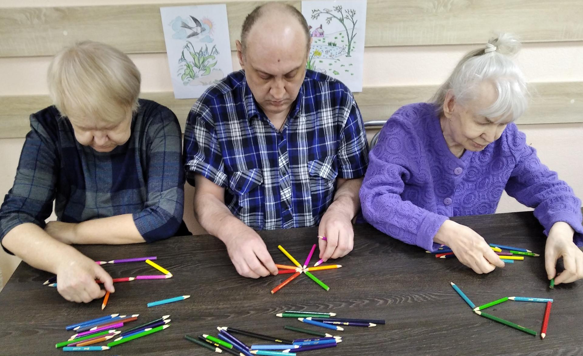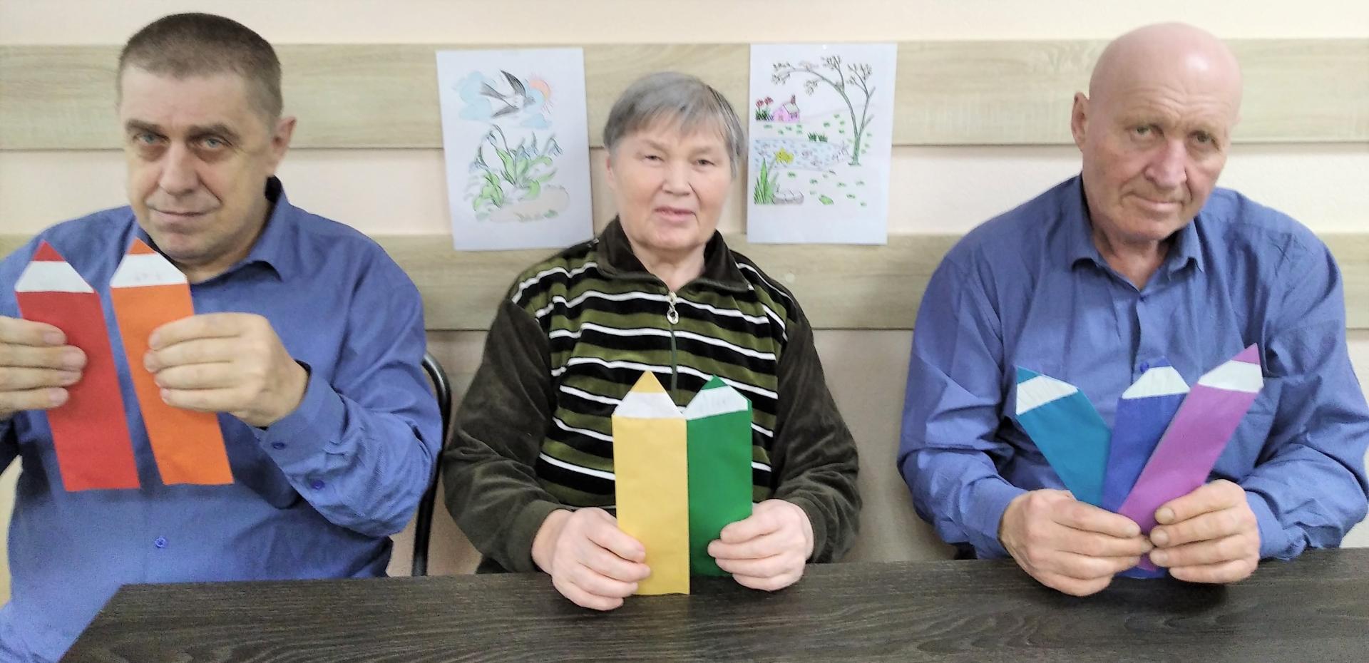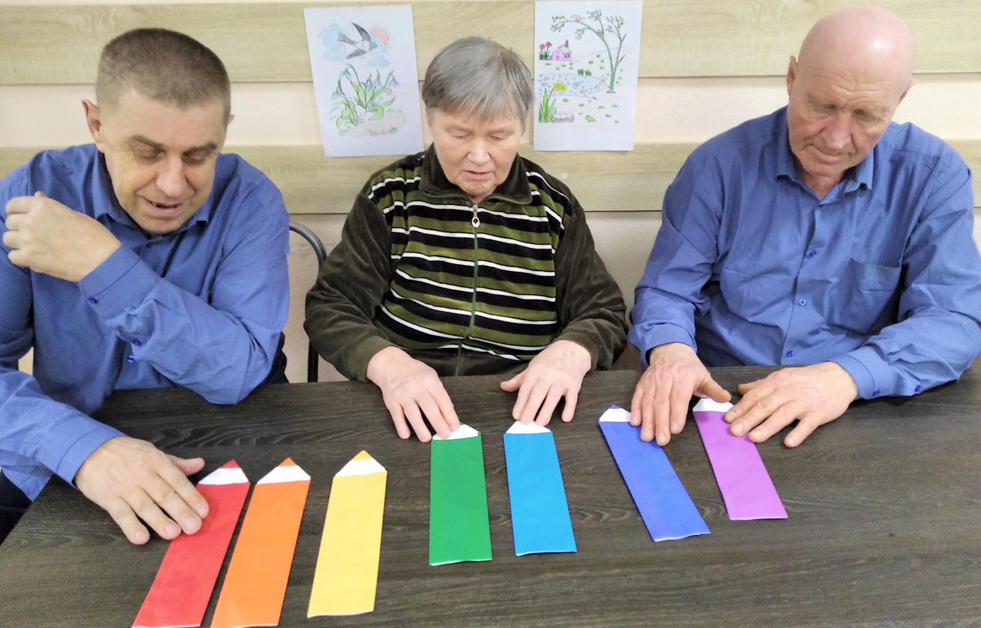 Получатели социальных услуг психоневрологического отделения «Ветеран» любят рисовать цветными карандашами. В День цветных карандашей с ними было проведено психологическое занятие «Путешествие в страну цветных карандашей» с целью развития психических процессов, коммуникативных навыков и положительных эмоций. Проживающие отгадывали «Цветные загадки», складывали «Карандаши-оригами», вспоминали цвета радуги, делали фигуры из цветных карандашей, участвовали в подготовке художественной выставки «Весна пришла!».