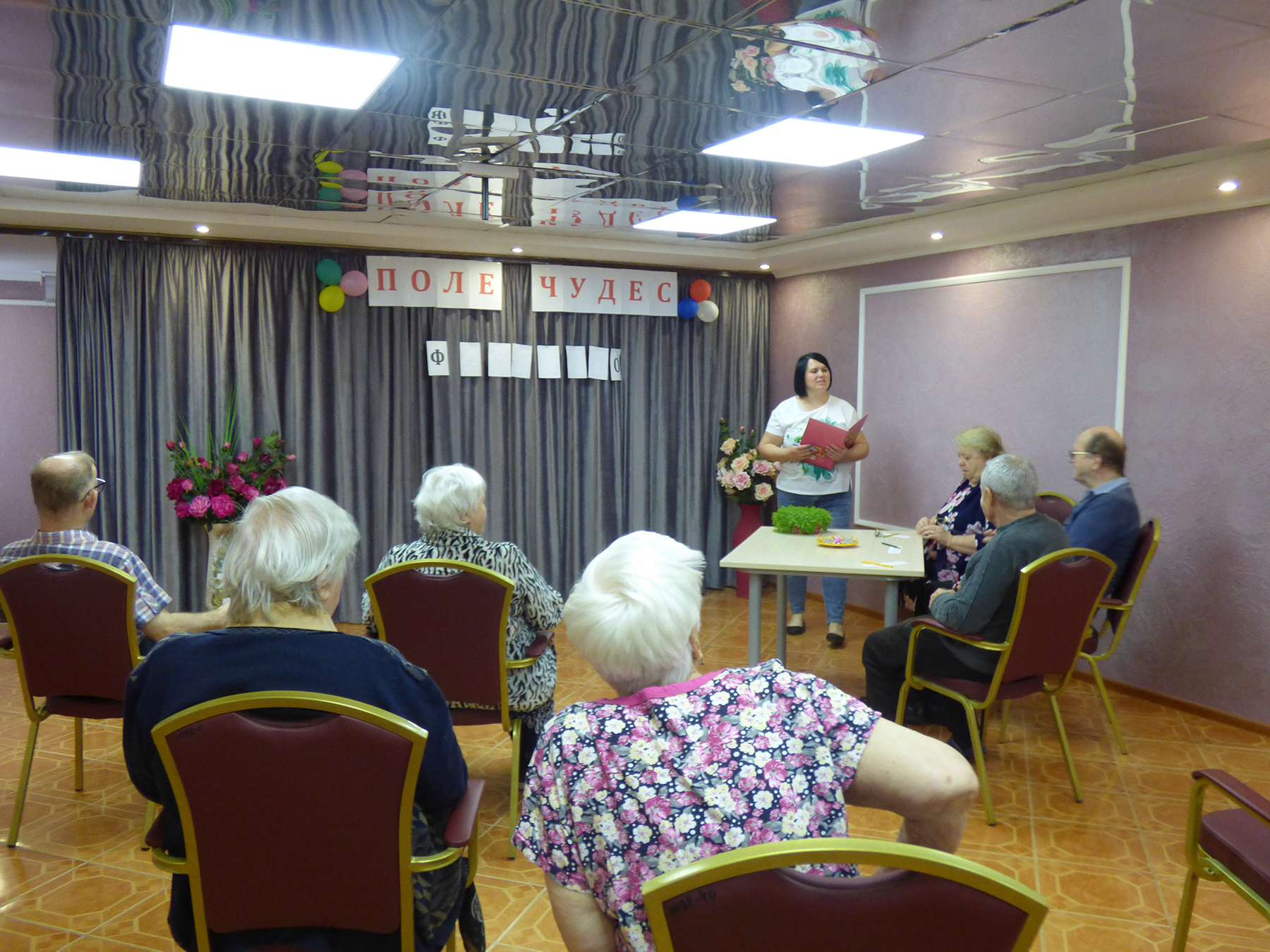 03.09.2021 г. в Геронтологическом центре «Ветеран» проходила развлекательная игра «Поле Чудес». Ведущая игры тепло поприветствовала всех участников, а затем познакомила их с правилами игры. В игре приняли участие три тройки игроков. Во время игры участники юмором рассказывали о себе и своих увлечениях. Зрители также принимали активное участие. Это были весёлые минуты отдыха. Такое мероприятие проводилось впервые, оно прошло увлекательно и оживлённо. Победитель финальной игры, рискнувший сыграть в супер игру, выиграл и получил приз. Все участники также получили поощрительные призы, а зрители – хорошее настроение. Игра понравилась всем
