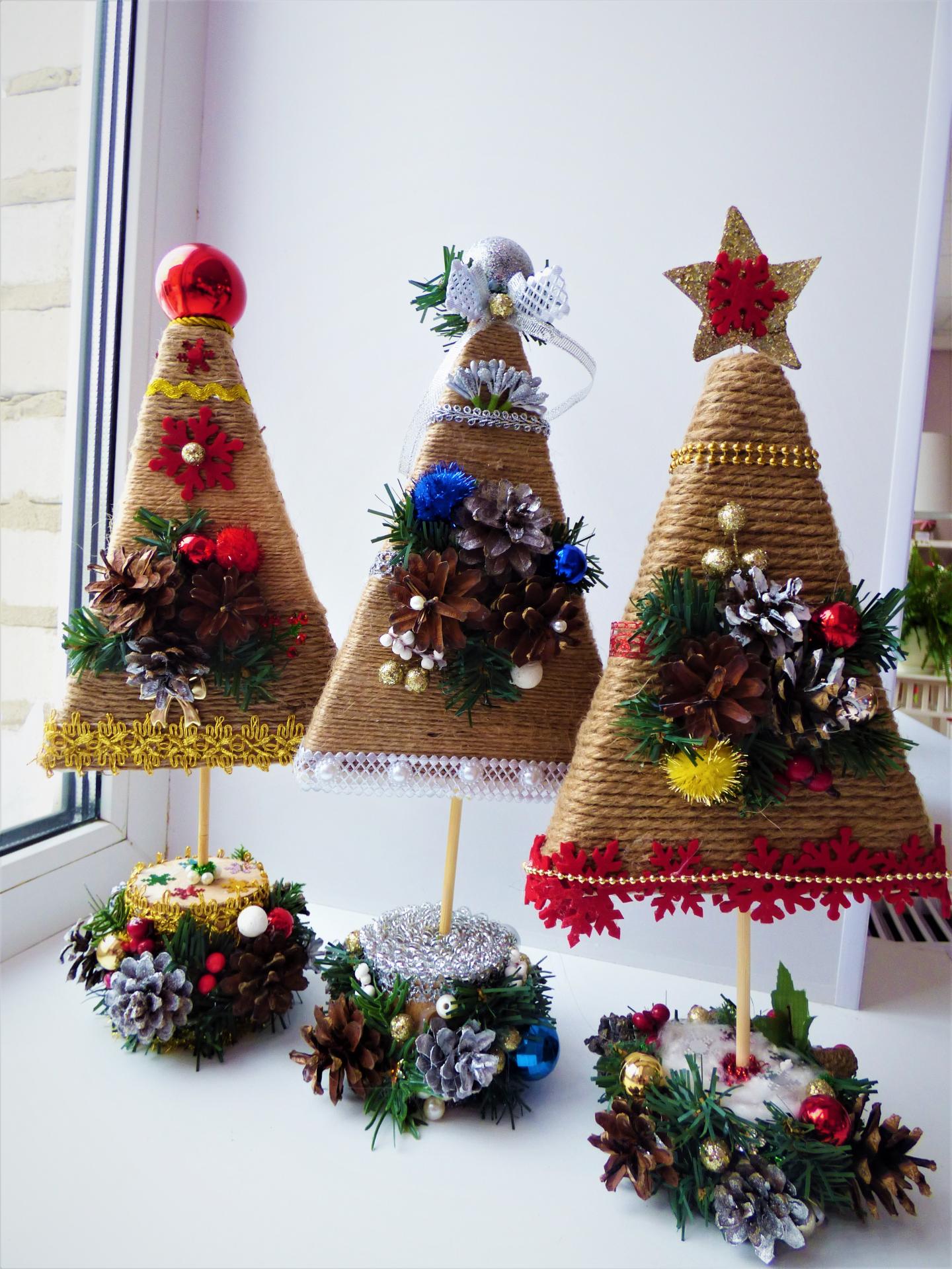 Тематические поделки всегда поднимают настроение и вдохновляют творить чудеса. Ёлочки получились очень красивые и необычные, теперь ими можно легко украсить любой интерьер.