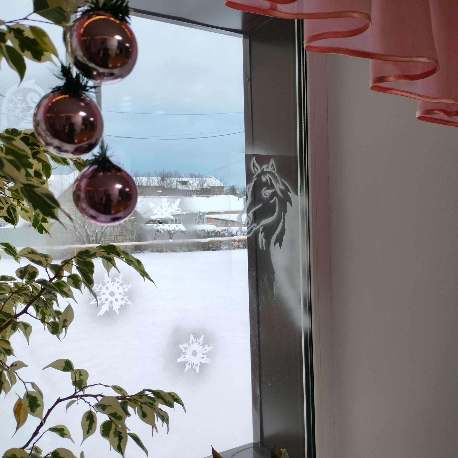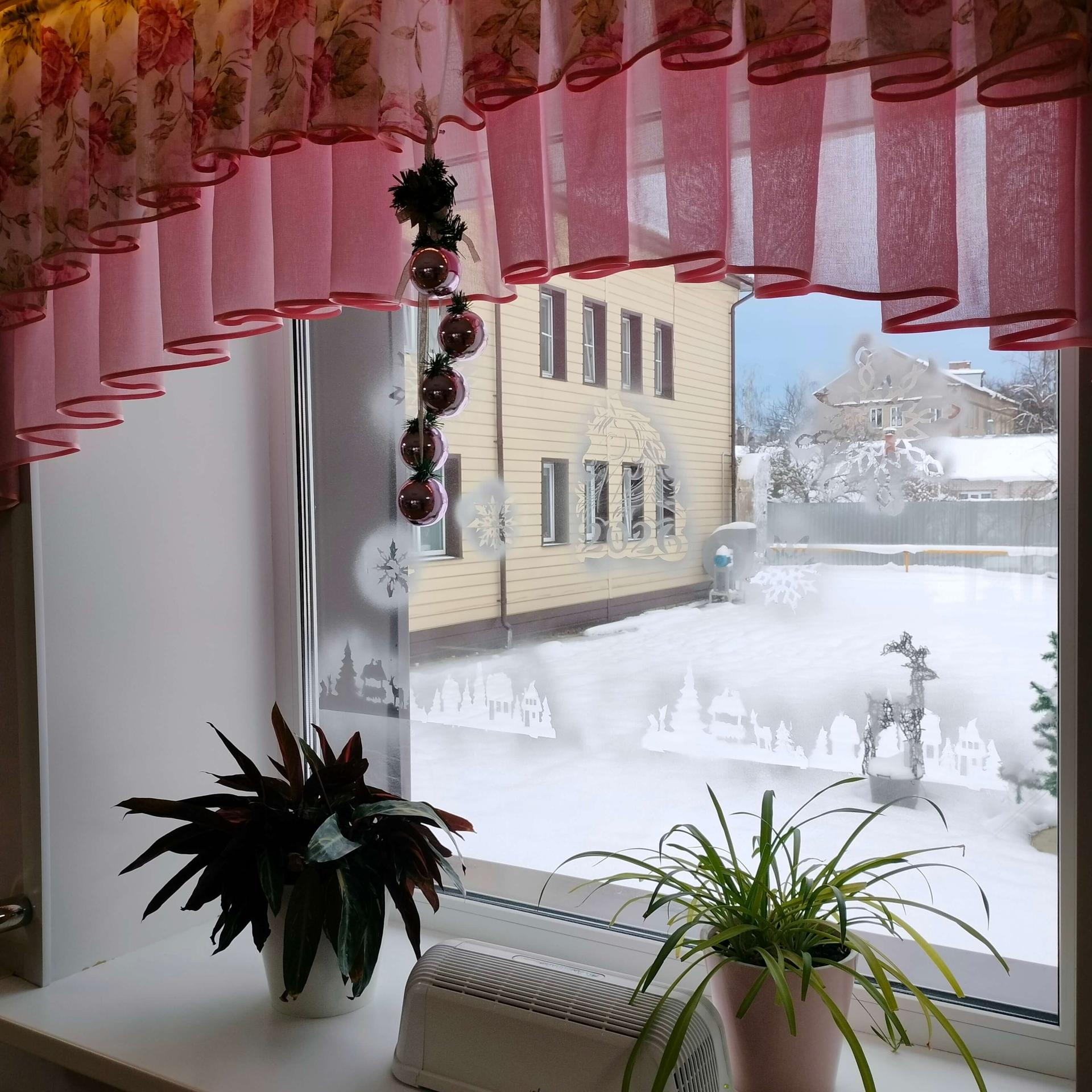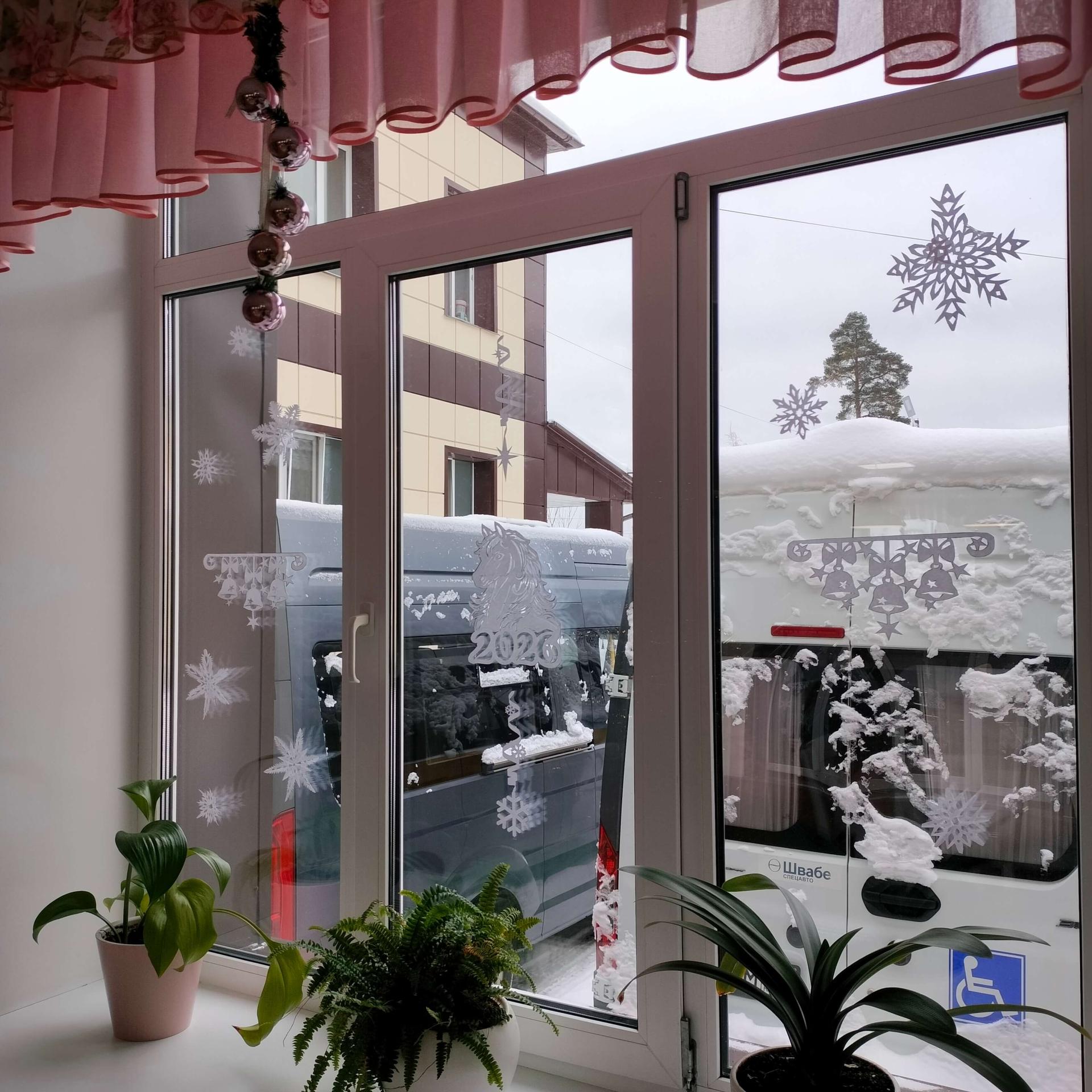 Окна центра украсили яркими гирляндами, милыми рождественскими веночками и блестящими снежинками. На стёклах появились изображения зимних пейзажей, заснеженных ёлок и рождественских символов — ангелов, колокольчиков и звёзд. Свет от гирлянд мягко освещал помещение, создавая уютную и праздничную атмосферу.