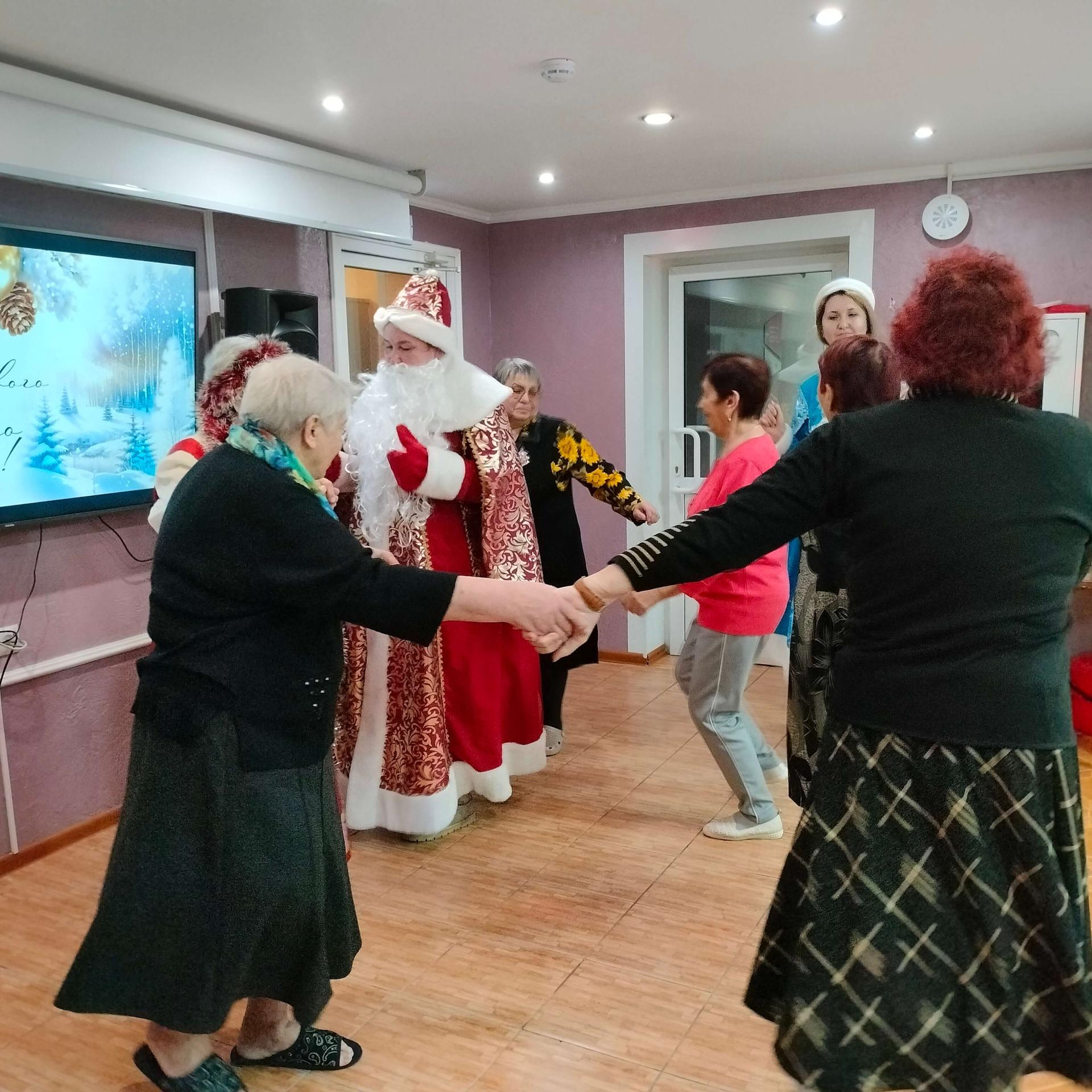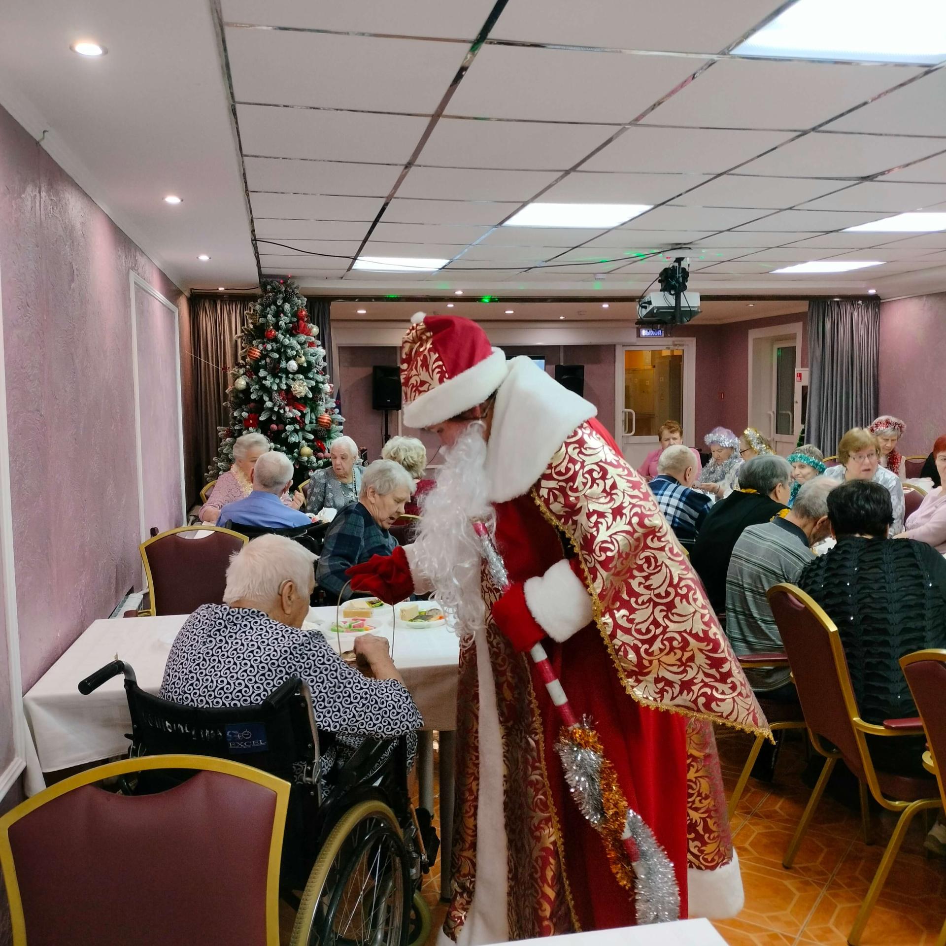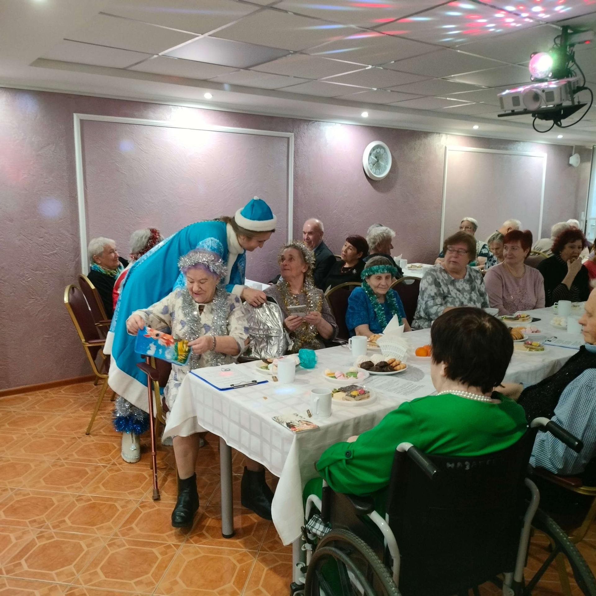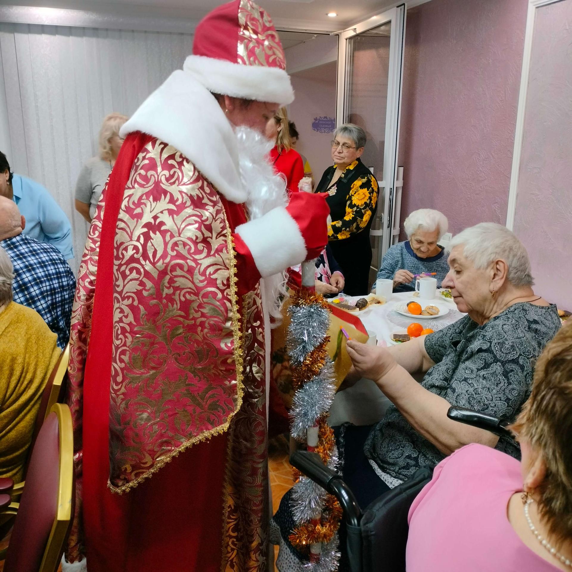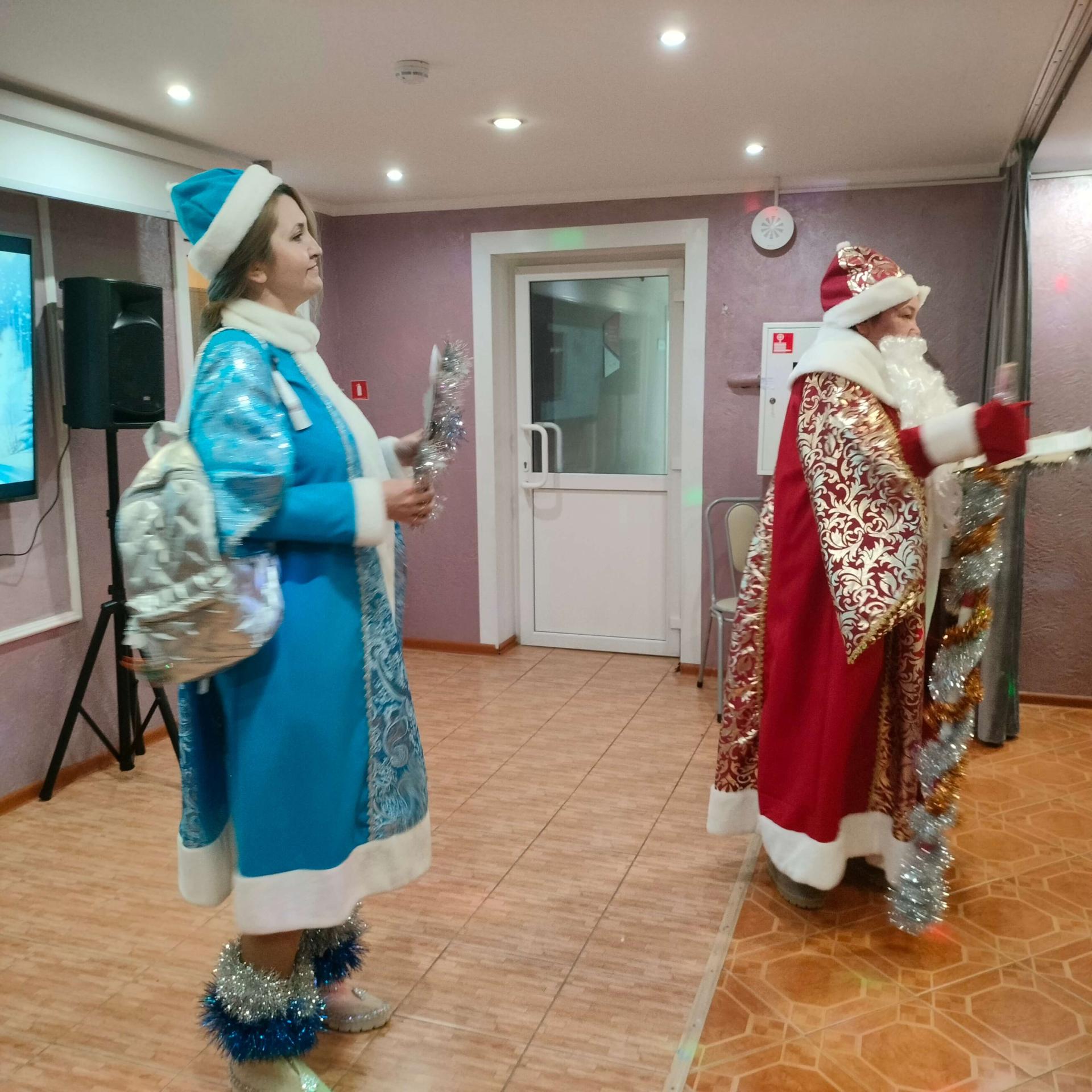 В конце программы всех присутствующих пришли поздравить с Новым годом Дед Мороз и Снегурочка. Каждый желающий смог окунуться в детство. Проживающие, позабыв о возрасте, задорно участвовали в играх, пели песни, водили хоровод, танцевали, отгадывали новогодние загадки.