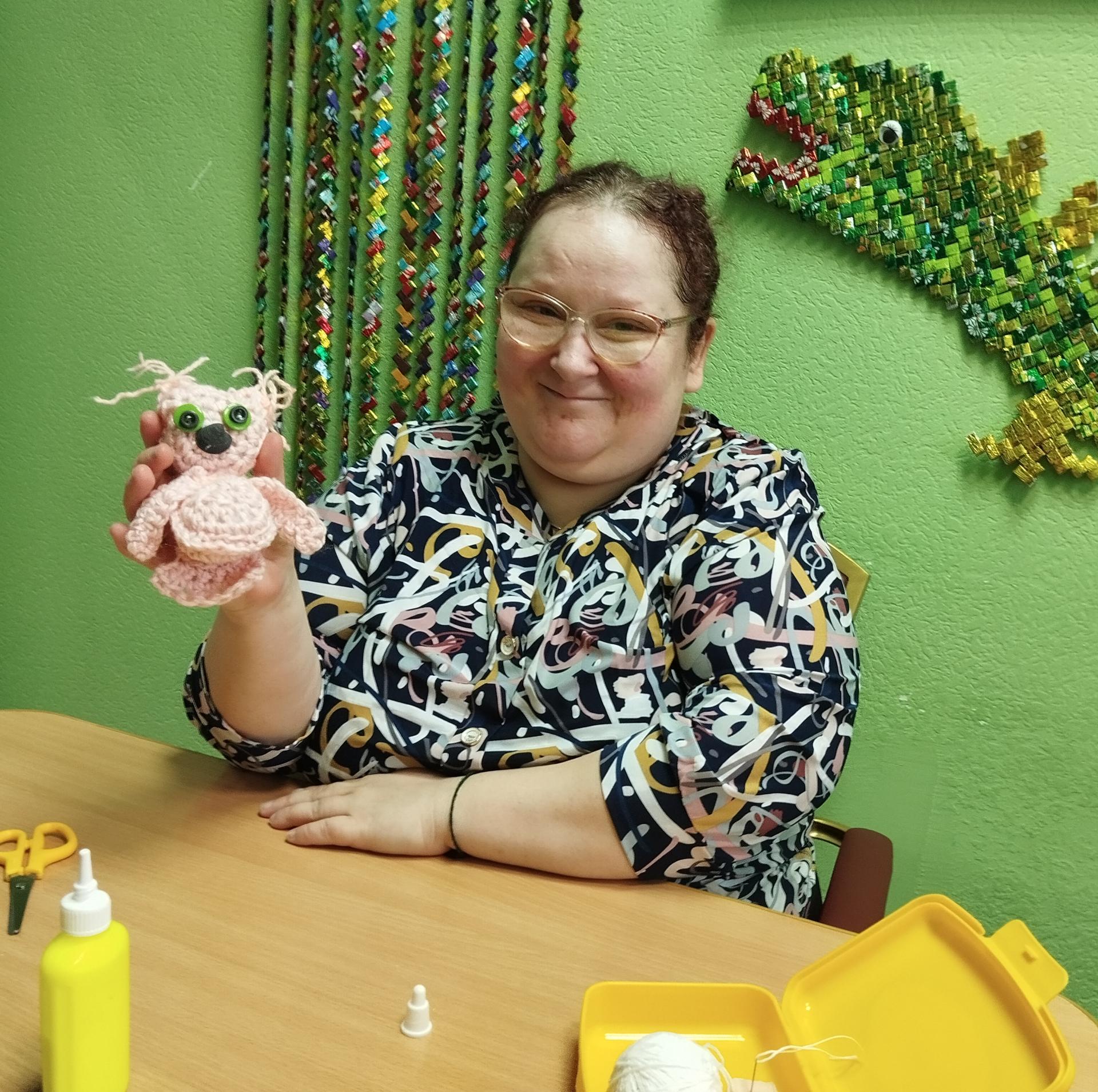 Проживающая геронтологического центра «Ветеран» Горелова Елена любит вязать крючком. Этому занятию Елена посвящает свой досуг и получает приятные впечатления и эмоции от процесса. Она создает целые коллекции салфеток, мягких игрушек, женских аксессуаров и многое другое.