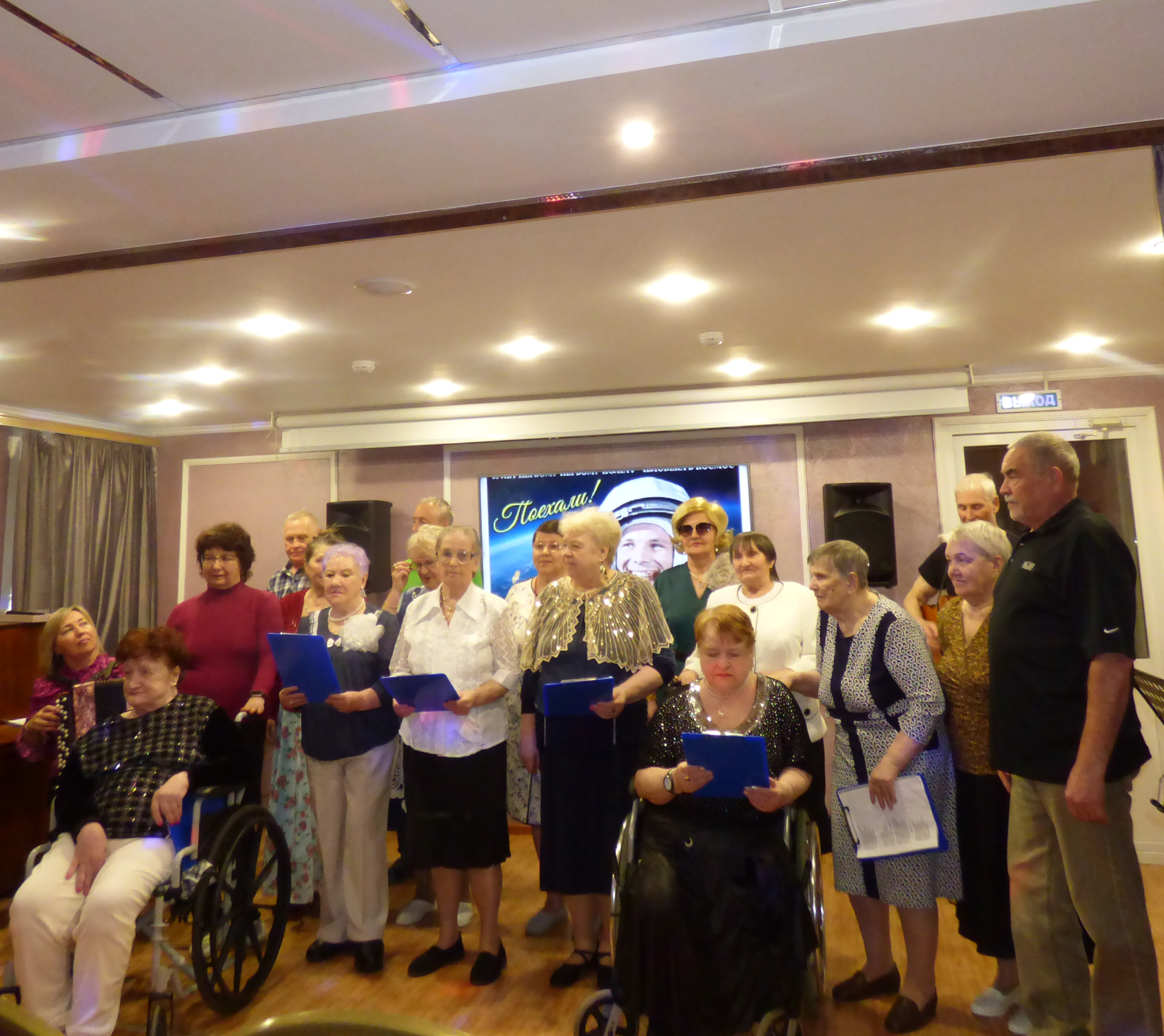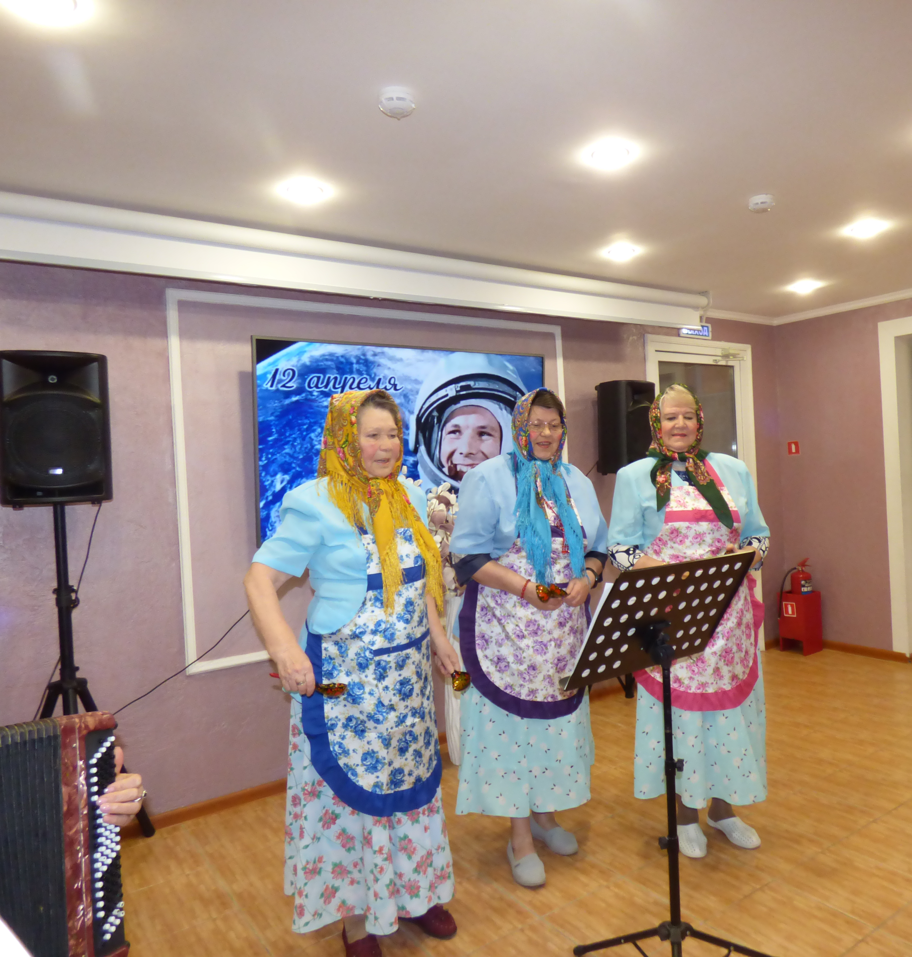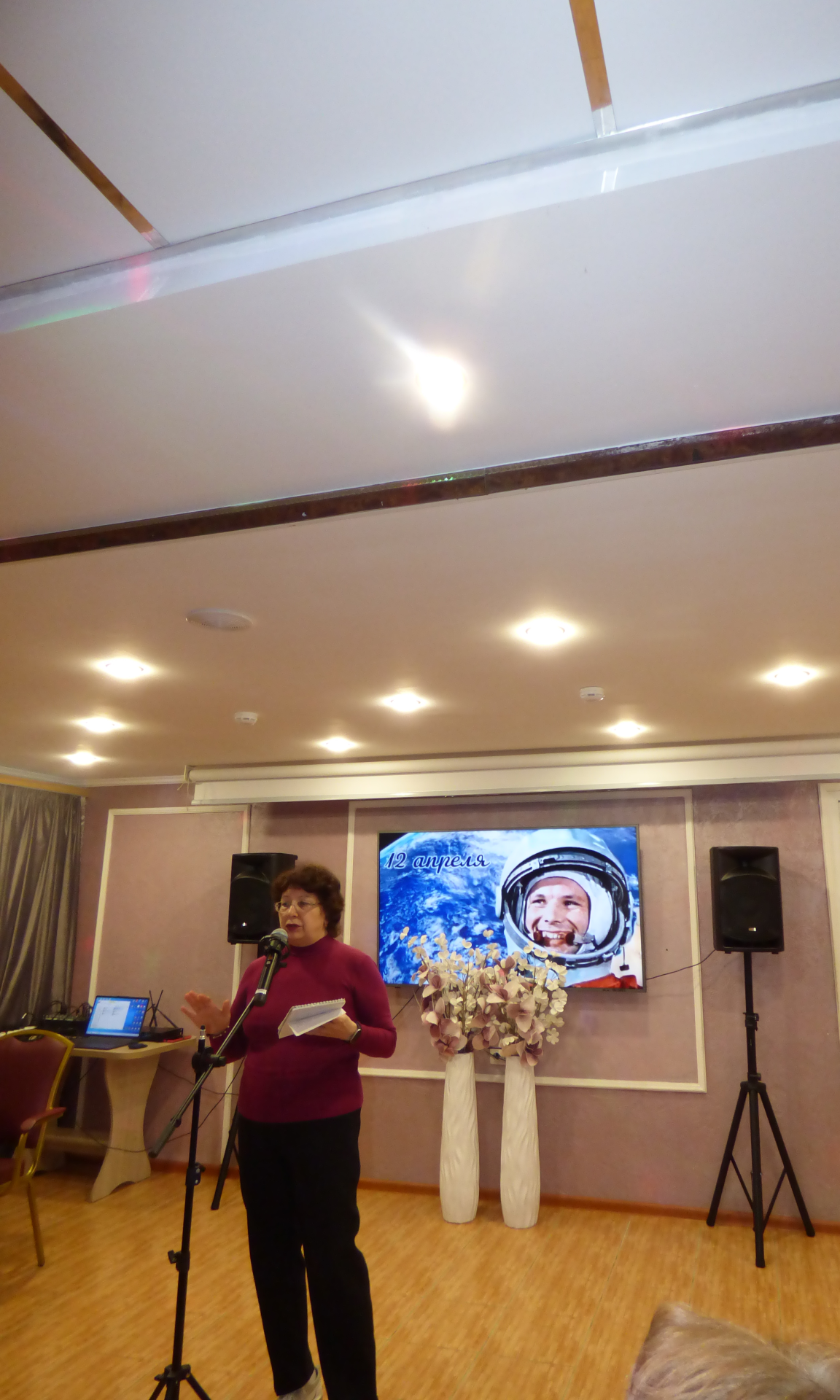 12 апреля вся Россия отмечает День космонавтики. Юрий Гагарин стал первым человеком, у которого получилось покорить космос. Он первый смог это сделать и совершил космический полет, сказав свое знаменитое «Поехали!», Юрий Гагарин открыл новую эру в истории. 09 апреля в предверии празднования Дня космонавтики для жителей и гостей ГЦ «Ветеран» состоялся праздничный концерт. В зале царила атмосфера всеобщего воодушевления. Выступления артистов сопровождались видеопроекцией о космосе, первом полете космонавта, что позволило почувствовать значимость этого дня. Со сцены звучали вокальные номера на космическую тематику. Песню «Трава у дома» исполнили не только артисты, но и все присутствовавшие зрители. Тимофеева Н. прочитала стихи собственного сочинения и одно из них «Послание», адресованное ГЦ «Ветеран». Также стихи и песни собственного сочинения зрители услышали от Питиримовой Л., Кочетковой Н., В.